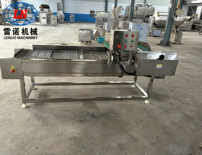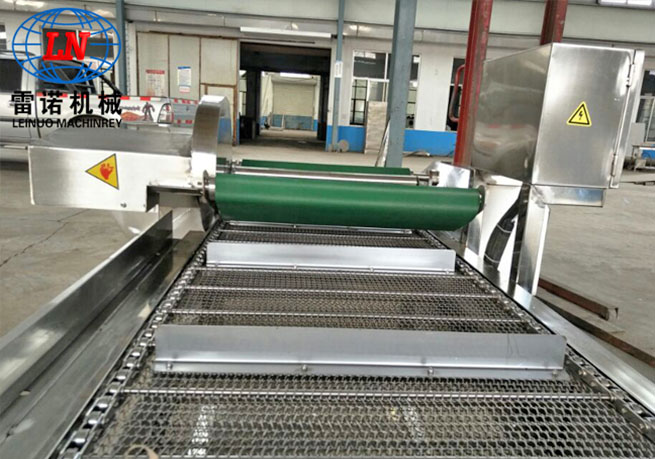 該流水線主要由清洗段、提升輸送段、震動瀝水段以及風干除水段組成,主要用于袋裝食品的高低溫殺菌后,產(chǎn)品表面油污、油漬的連續(xù)清洗及風干。